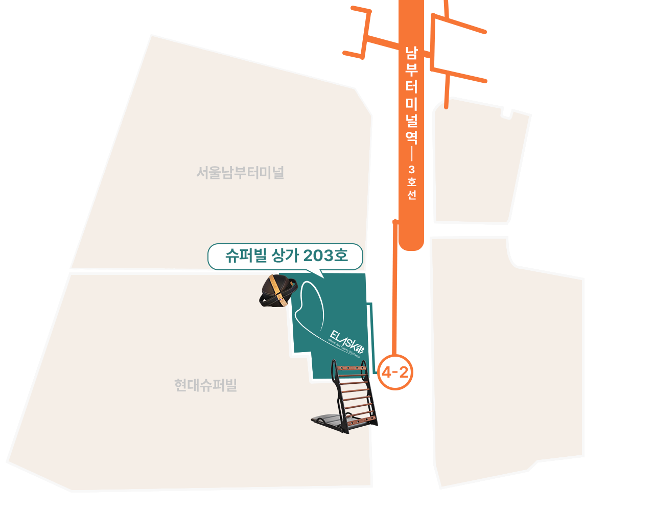 엘리베이터로 203호를 찾아오시면 됩니다.